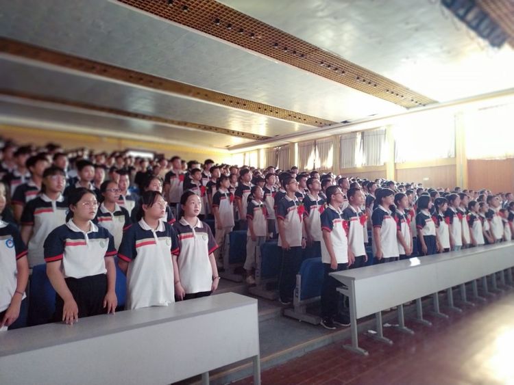 在大会的最后,郭进校长上台发表讲话,结合真实事例让在场学生仔细体悟,并对广大莘莘学子提出要具有梦想、奉献、远见、担当(勇敢)这四个品质。梦想就是要有目标,有方向,这样无论是学习还是做事都会有个指引,以防时光在迷茫中流逝。奉献就是要乐于助人,乐于分享,不管是在学习中还是生活中,都要乐善好施。远见就是要以小见大,要用长远的目光看待问题,要勇于突破自己,敢于拼搏。作为中学生努力学习不仅要为明年中考做准备,也要为高考做准备,甚至是为日后踏入社会做准备。担当就是要勇敢,要敢于承担相应责任,如家国责任。郭校长的一番寄语发人深省,赢得台下久久不息的掌声。
