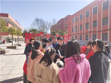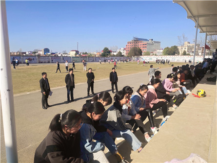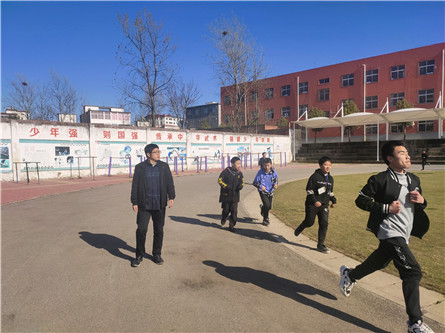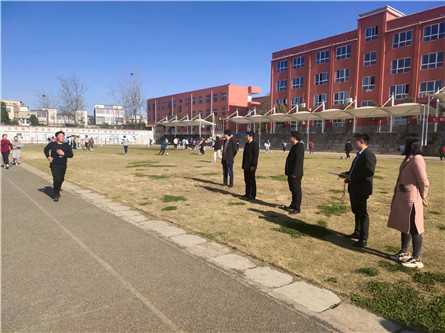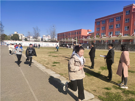 从开学起,毕业班就调整文化课时间,挤出一定的时间由体育老师丁德政、曾绪琴、黄铎和六位班主任密切配合,充分利用早操、课外活动和自习课时间对必考项目——男子1000米、女子800米、足球(篮球)、立定跳远(跳绳)等项目进行专门指导集体训练。对部分薄弱项目的学生进行强化训练,做到定人、定时、定位、定内容,不让体育考试成为学生中考的一道障碍。每次训练,校长刘良树、教务主任胡术银、教科室副主任何文生等领导同志都亲自参入监督指导。学校计划考前,组织一次体育模拟考试,强化考生的运动爆发力、考场技术和适应能力。让每一名九年级学生明确自己的差距,以便有针对性地训练。